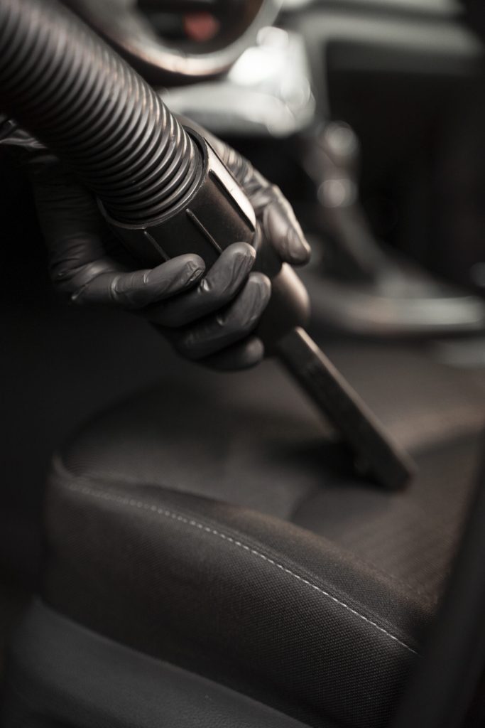 Wydajny odkurzacz z długim wężem – idealny do wnętrza auta.